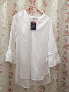 - 新品 未使用 白 ホワイト コットン チュニック ブラウス シャツ M L フリー 五分袖