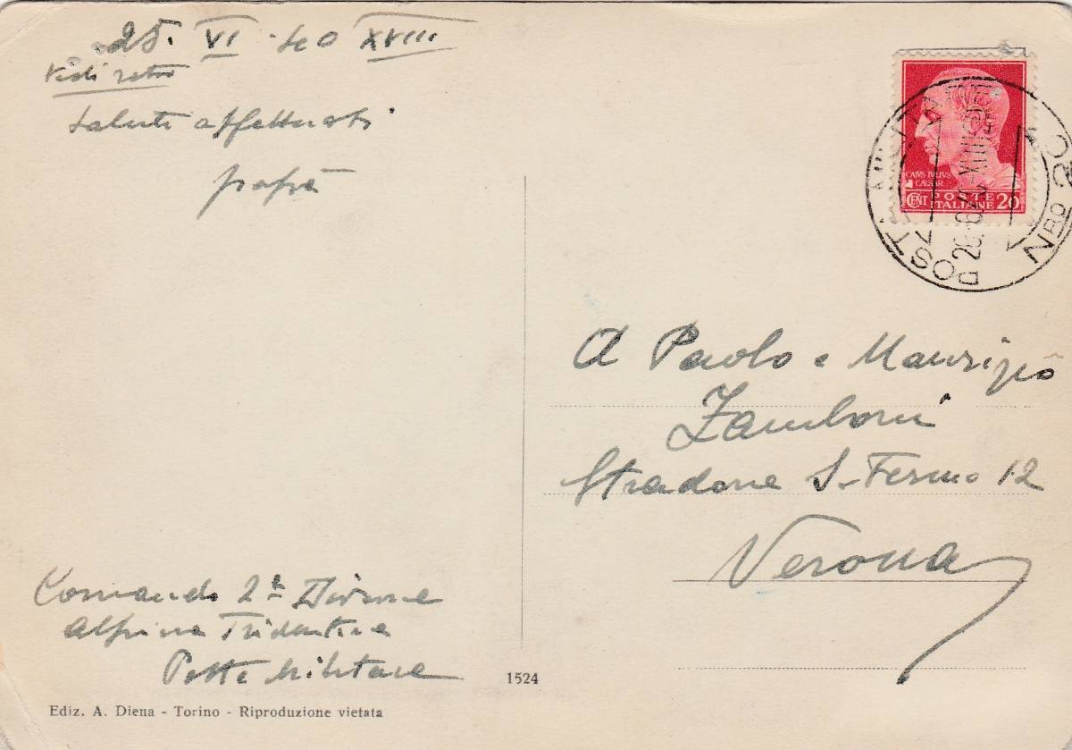 - 軍事郵便 1940 第2次大戦 イタリア軍 伊20軍事局 アルプスの戦 カエサル20C.切手