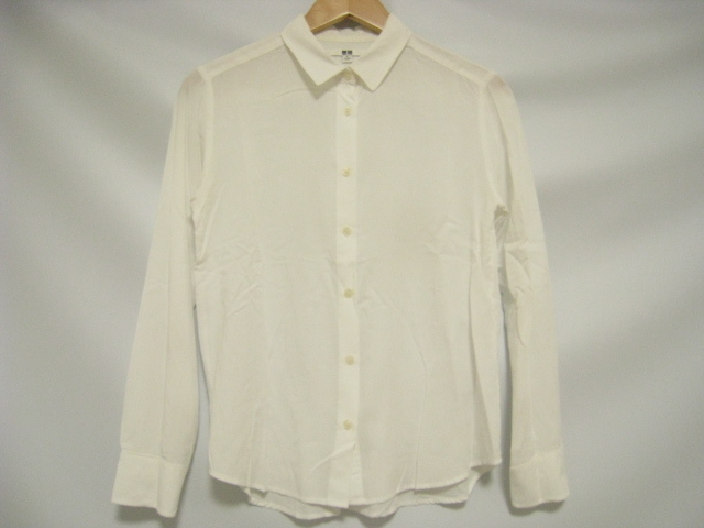 > UNIQLO ユニクロ トップス シャツ 長袖 薄手 白 ホワイト Sサイズ 無地 シンプル