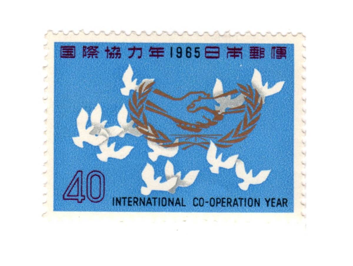 > 昭和40年1965「国際協力年/協力年マークと平和のハト」40円切手・未使用【送料無料】「熊五郎の切手」00800357