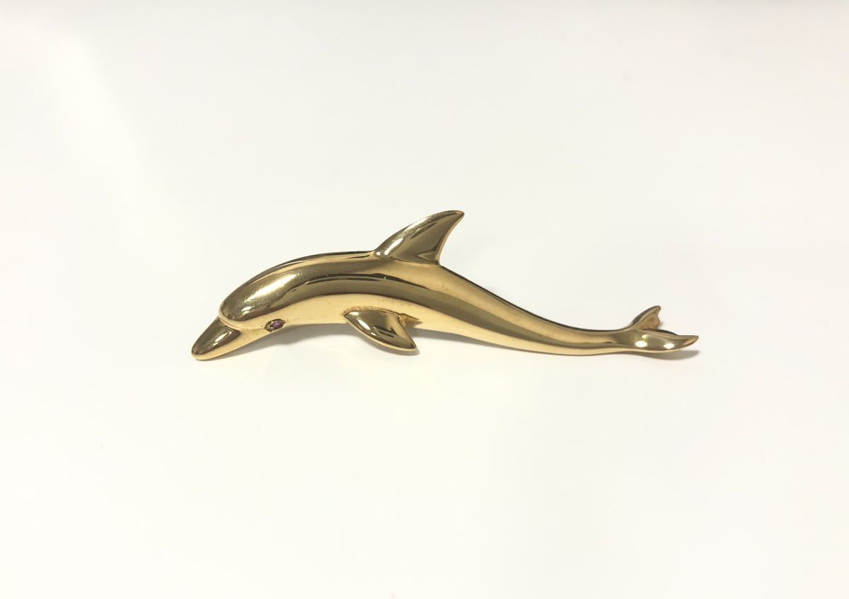 - 【質屋 尾張屋商店 東京】 ☆仕上済☆ K18 18金 イルカ ルビー ブローチ