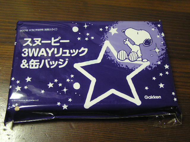 - キラピチ 2017年8月号付録 スヌーピー 3WAYリュック 缶バッジ ※土日祝日発送無し
