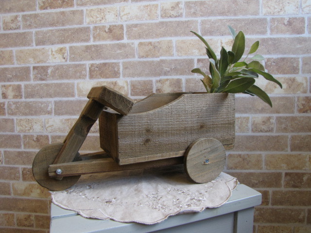 - フラワースタンド 三輪プランター 木製リヤカー 木製花台 プラントアイテム ガーデン雑貨
