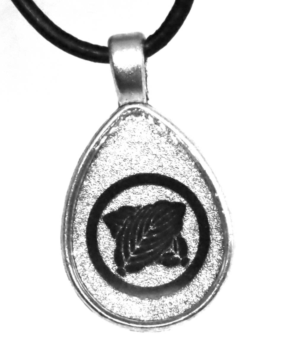 - 丸に違い柏 ペンダント チョーカー グッズ 家紋 本革紐 付属