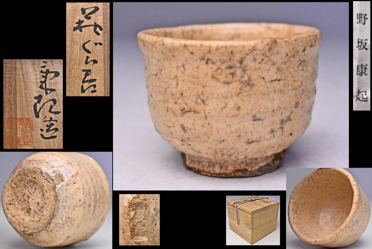 > 野坂康起 ★ 萩ぐい呑 ★ 共箱栞 ★ 使用感あり ★ 枇杷釉タイプ ★ 人間国宝 荒川豊蔵 師事 ★ 萩焼のベテラン ★