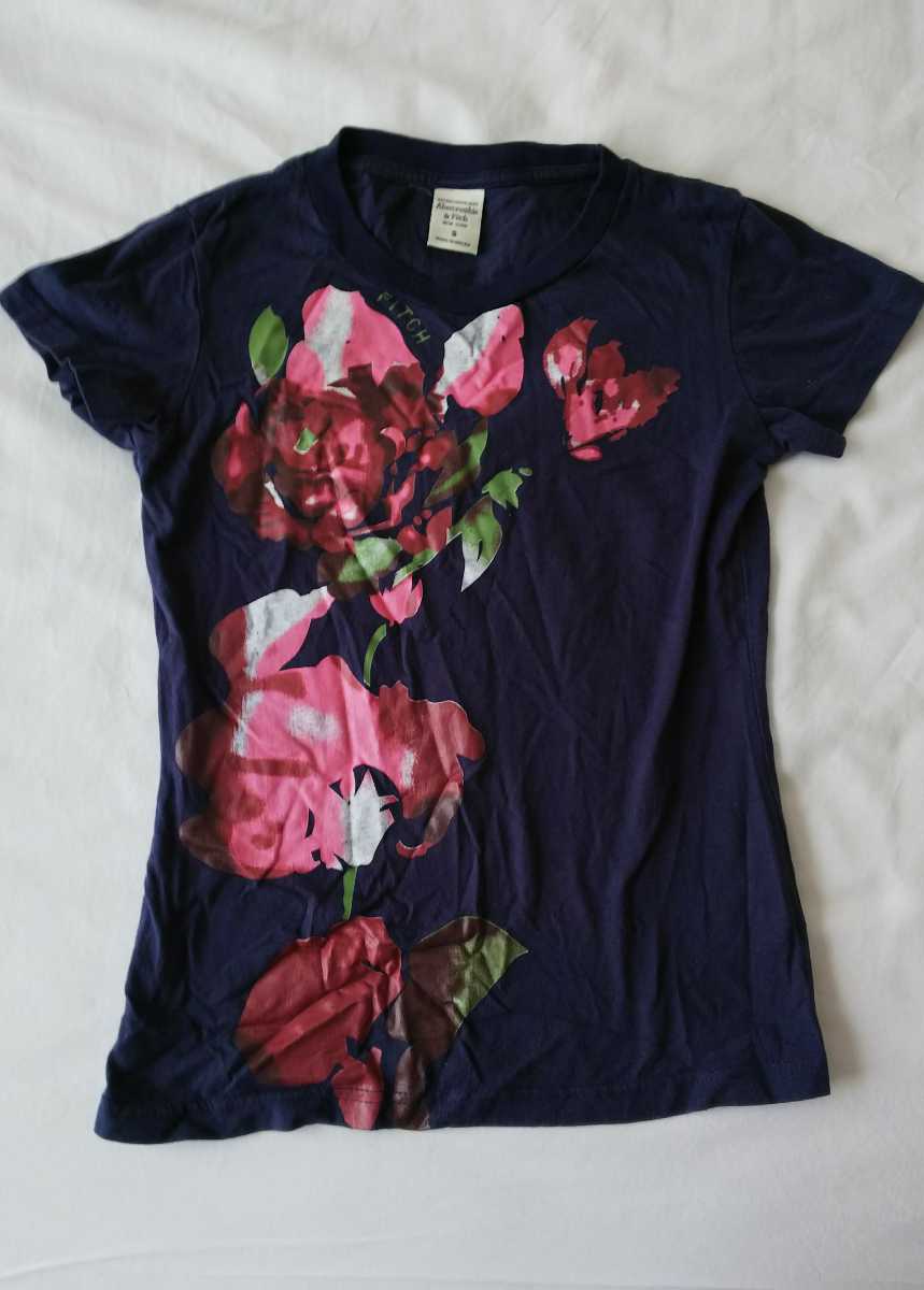 > LA購入 Abercrombie&Fitch 花柄 フラワー 半袖 Tシャツ ネイビー 紺 アバクロ Abercrombie S アバクロンビー ロサンゼルス