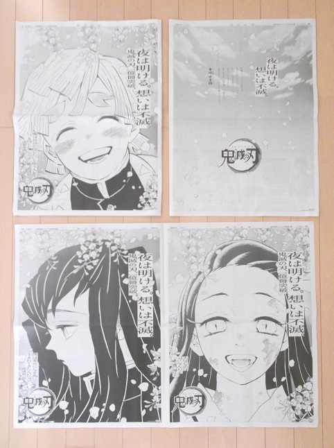 - 『鬼滅の刃』 完結 最終巻 23巻 発売 記念 20/12/4 朝日新聞 特別 見開き 4面 全面広告 我妻善逸 竈門禰豆子 時透無一郎☆即決 吾峠呼世晴