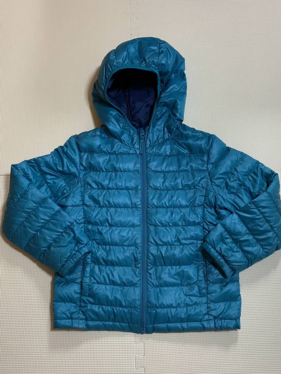 > ★中古★ユニクロ★UNIQLO★中綿ジャケット★フード付き★サイズ130★光沢感のあるエメラルドグリーン★