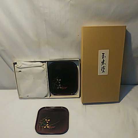 - 五客揃 《玉虫塗り》茶托 盆 湯茶 御茶 箱入り未使用品 送料520円