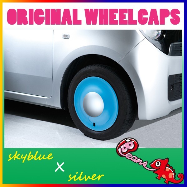 - スカイブルー×シルバー Beans・ビーンズ/14インチホイールキャップ(スペシャルカラー)
