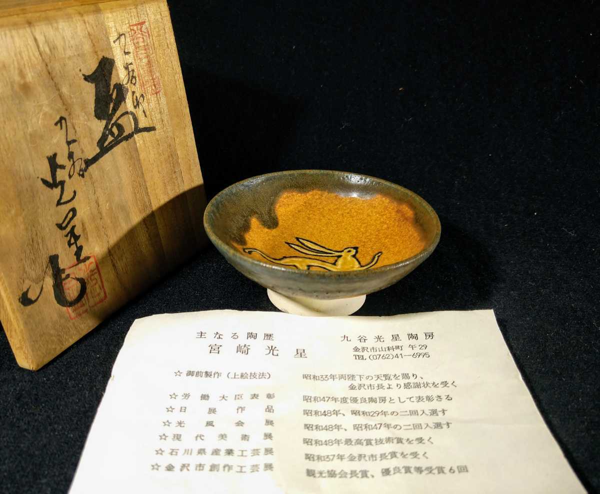 - 宮崎光星 「九谷卯盃」 兎図 酒盃 ぐい呑 酒器 九谷焼 a-25i903-cd