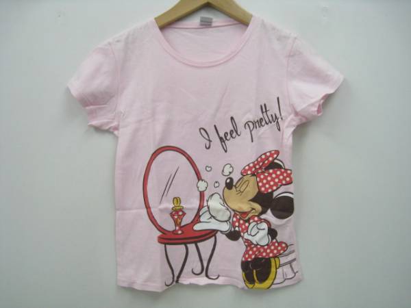 - DISNEY ディズニー ミニーマウス イラストプリント 半袖 Tシャツ ピンク