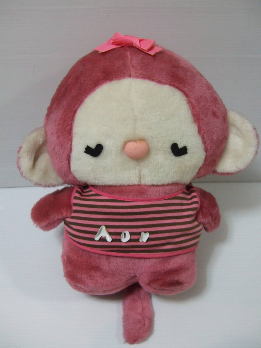 - ぬいぐるみ さる mon モン 昭和 ピンク 当時物 サル