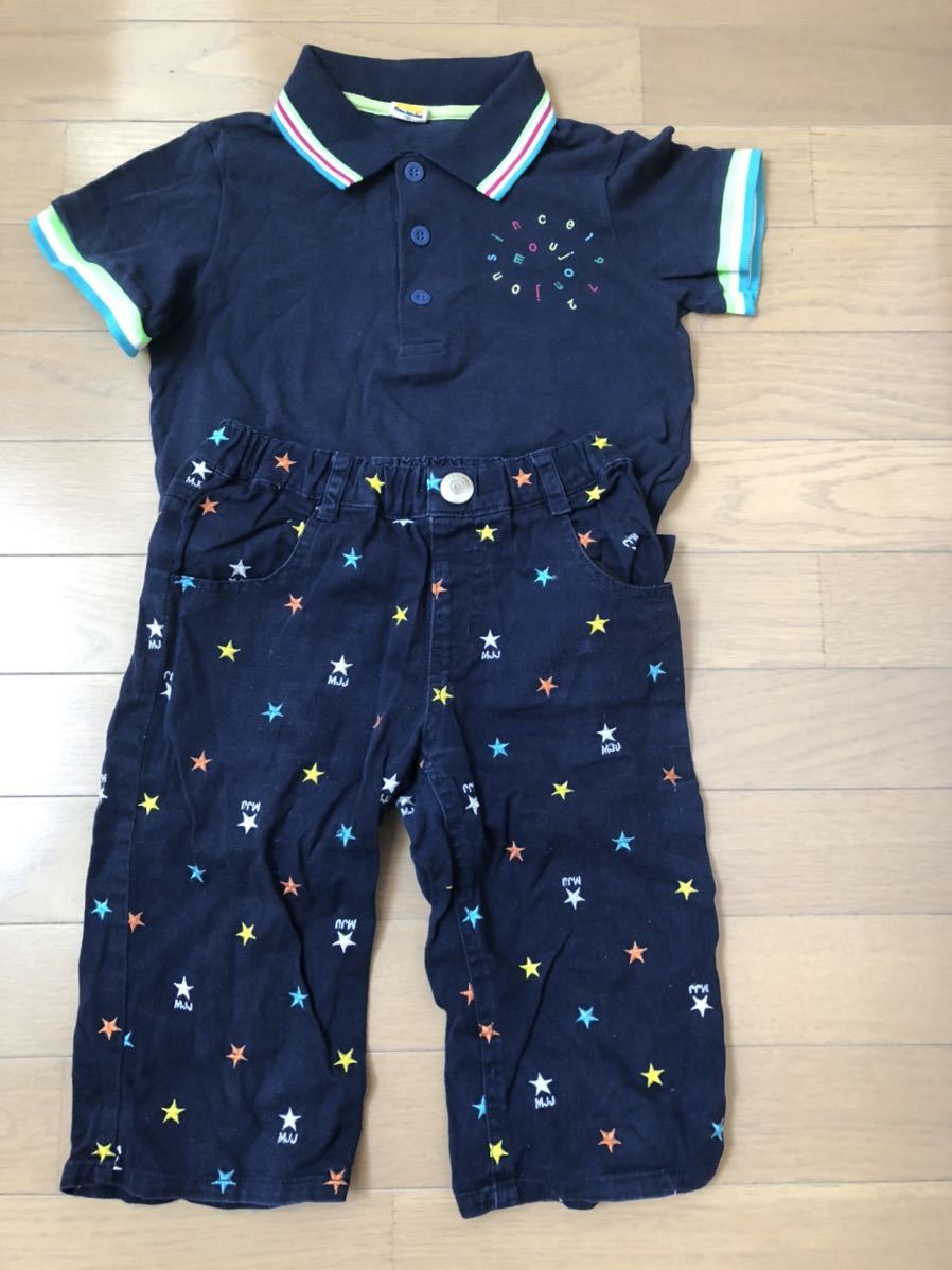 > ムージョンジョン mou jonjon 紺色の半袖ポロシャツと短パンツ2点セット★130cm