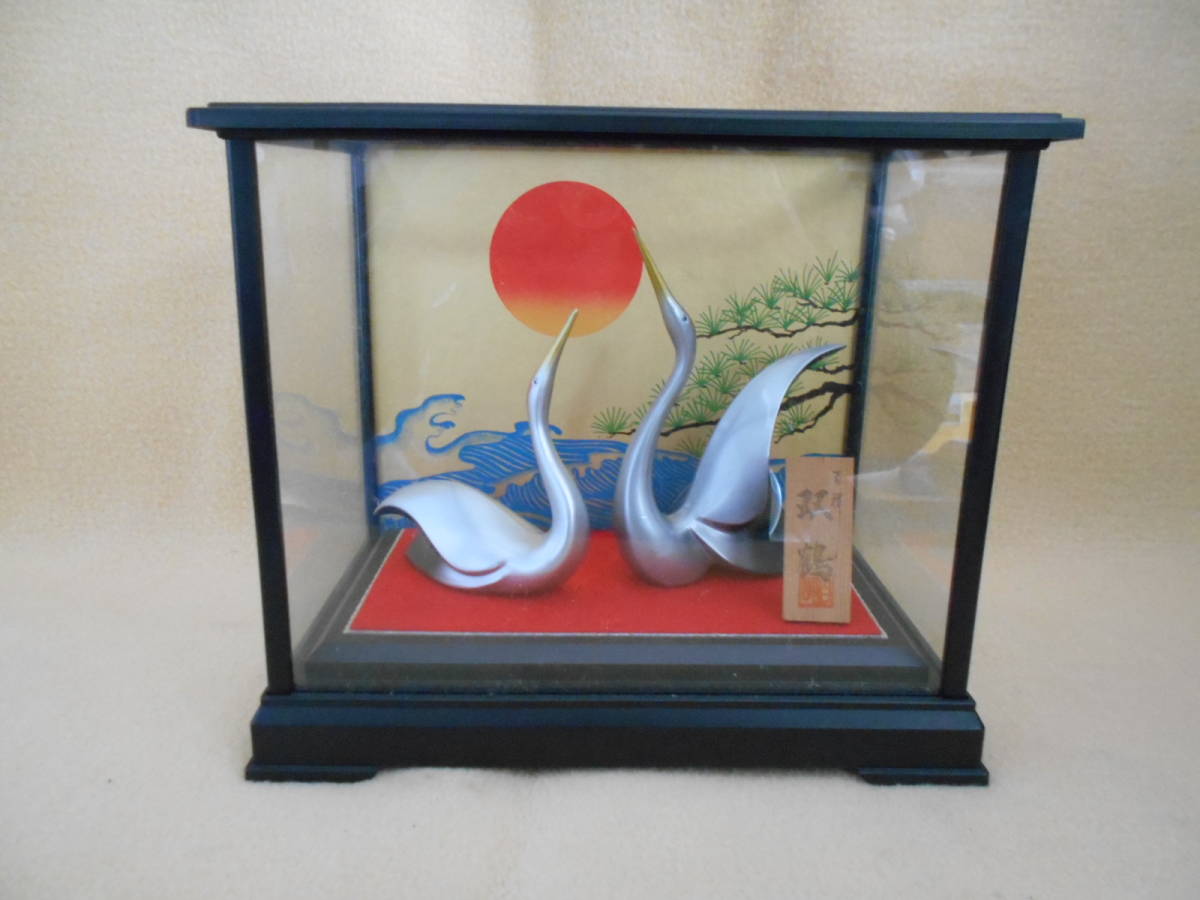 - ●昭和レトロ 吉祥 双鶴 夫婦 飾り置物 ガラスケース入り 縁起物 現状品 M9794みち