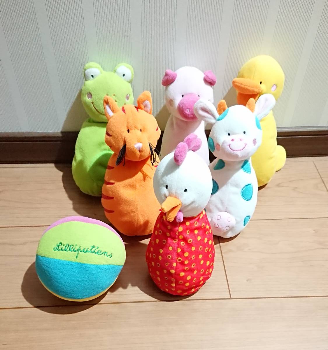 - 送料無料 アニマル ボーリング セット ぬいぐるみ 布 おもちゃ 6体 ボール 音 キラキラ ラメ ふわふわ 知育玩具 子供 ベビー キッズ