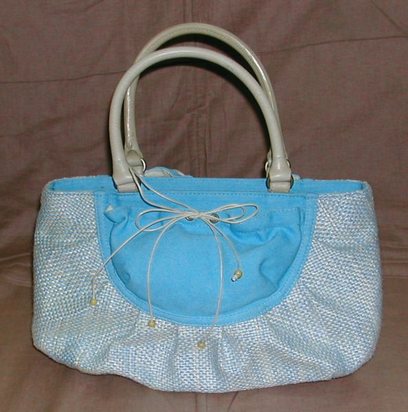 - ■タグ無新品:小さめで可愛い 布製ハンドバッグ ブルー系 DmC29