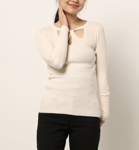 - C.R.E.A.M ティアドロップデザイン カラーニットトップス Gベージュ