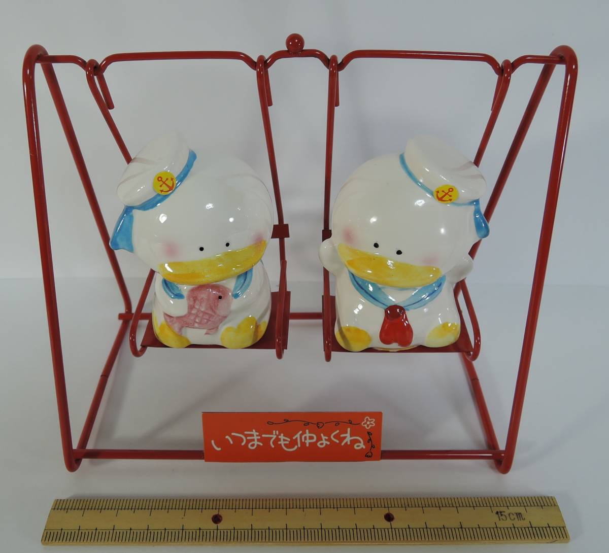 - ☆17H 昭和レトロ■ブランコに乗っている アヒルのカップル 置物 陶器製■
