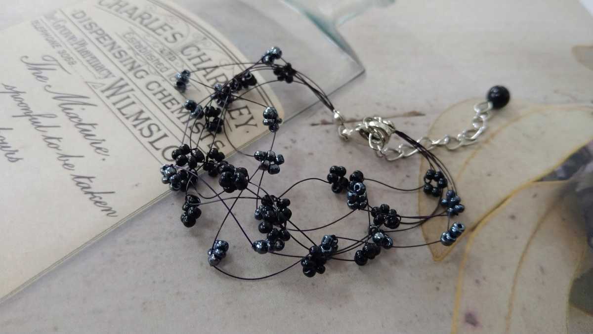 - □フェミニンな印象□黒&グレービーズ・かすみ草のような印象のブレスレット□