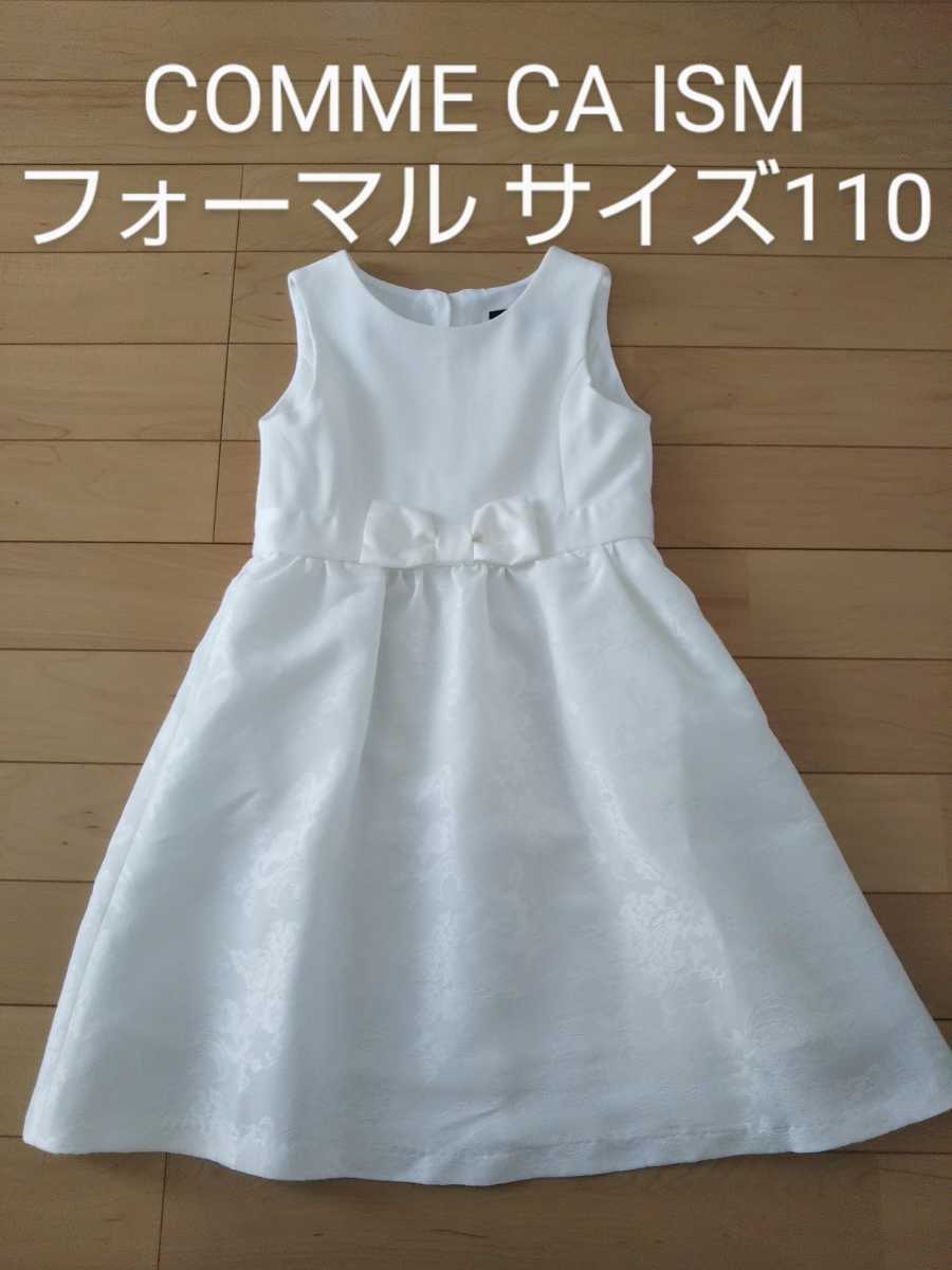 > 【新品未使用】コムサイズム 上品 フォーマルワンピース サイズ110 白 リボン 入園式 卒園式 入学式 発表会 COMME CA ISM 結婚式