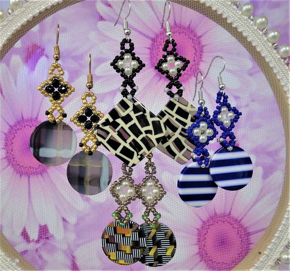 - 【ビーズ編み&高級アクリル板パーツ4セット一括販売】送料無料/ハンドメイドアクセサリー