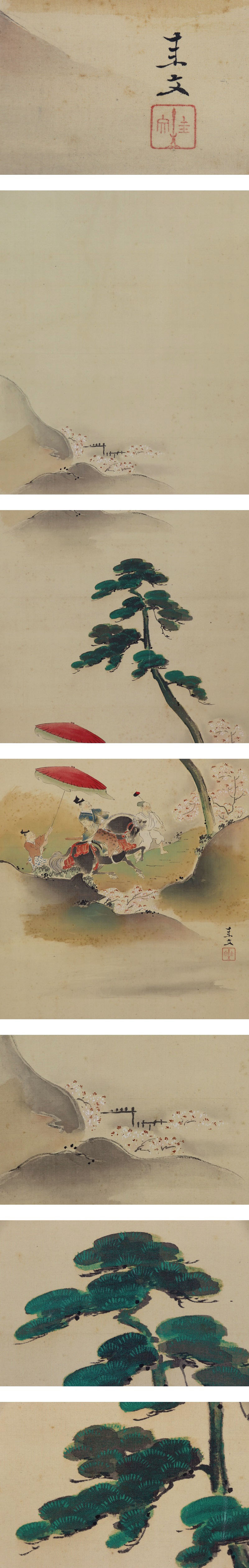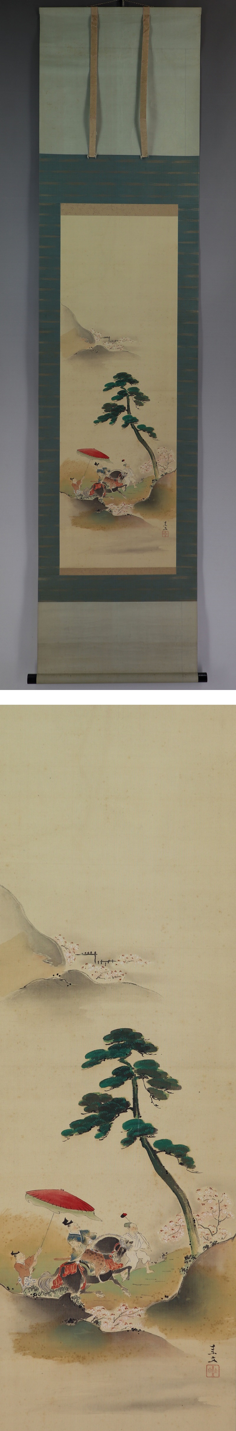 - 【真作】日比野圭文【堂上方観桜図】◆絹本◆合箱◆掛軸 v02110