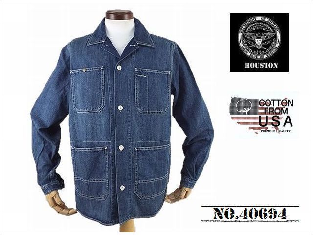 > 【送料無料 21%OFF 】HOUSTON ヒューストン USAコットン デニムシャツオール NO.40694 VINTAGE WASH_XLサイズ