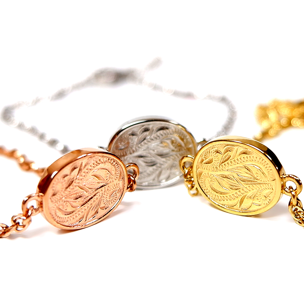 - ★SNS★ハワイアンジュエリー★金属アレルギー&温泉&海水浴ご使用OK★ステンレスブレスレット★波オーバルゴールド&ピンクGD&シルバー