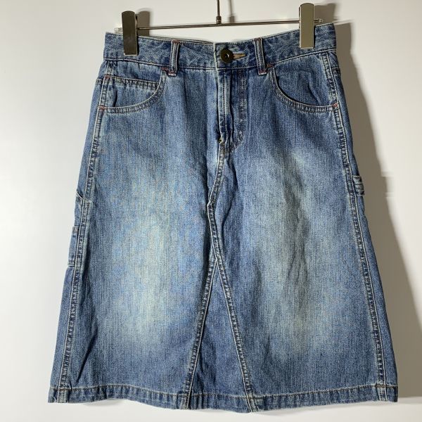 - 膝丈 台形 デニム スカート インディゴ レディース W58