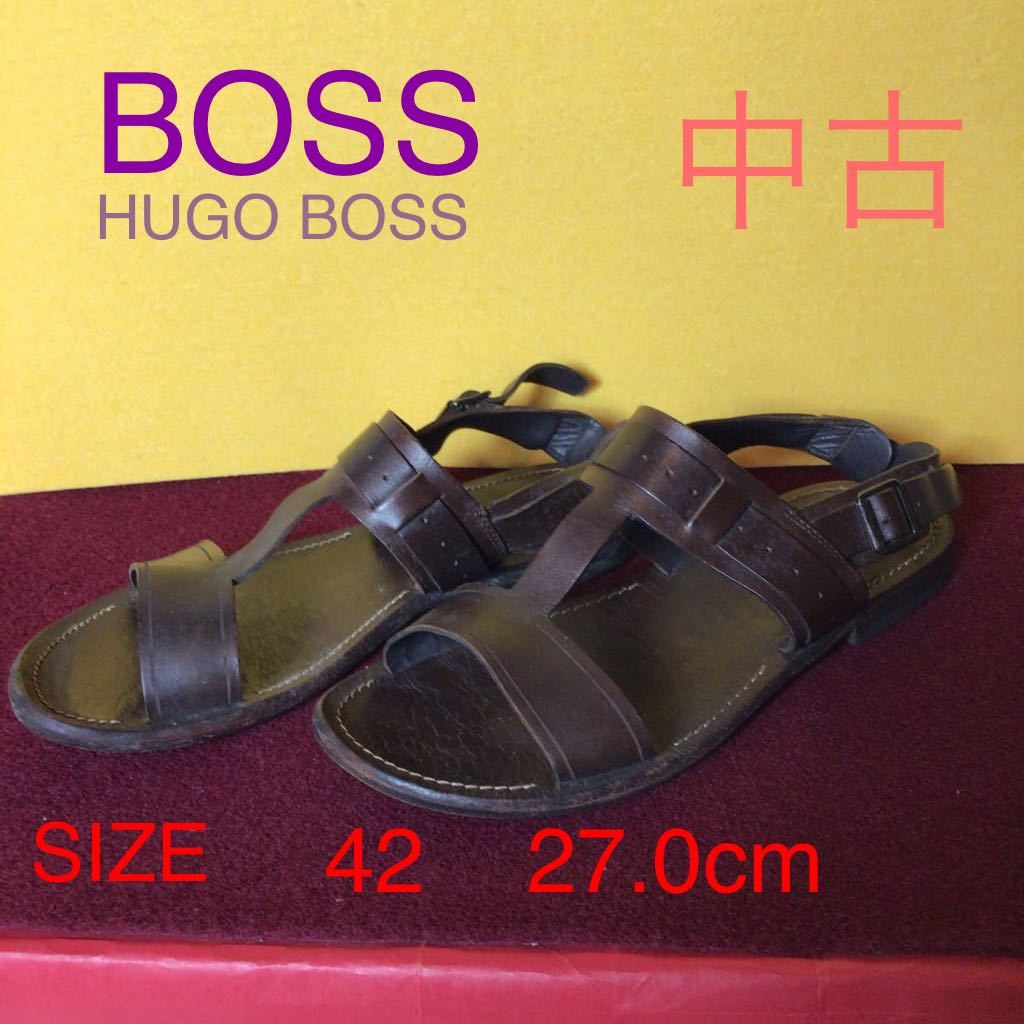 - 【売り切り!送料無料!】A-104 BOSS!HUGO BOSS!42!27.0cm!ブラウン!レザー!サンダル!中古!