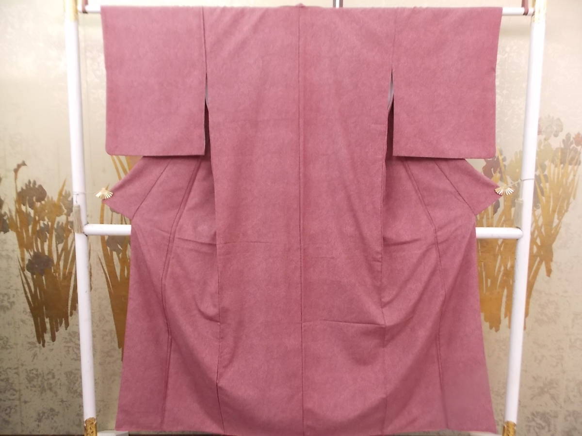 > きもの今昔2570 夏の100円バーゲン 合繊の袷きもの ポリエステル100% 臙脂色鮫小紋無地 お手入れ簡単