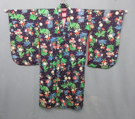 - 【政】29129 アンティーク 錦紗 縮緬 花柄 袷 着物 ちりめん 和装小物 和服