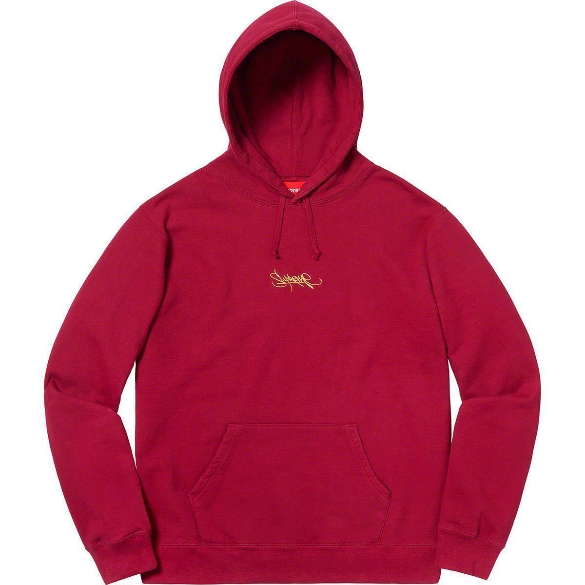 - 【新品 バーガンディーS Tag Logo Hooded Sweatshirt】 supreme タグロゴ パーカー script スクリプト 筆記体 金刺繍 box cross bandana