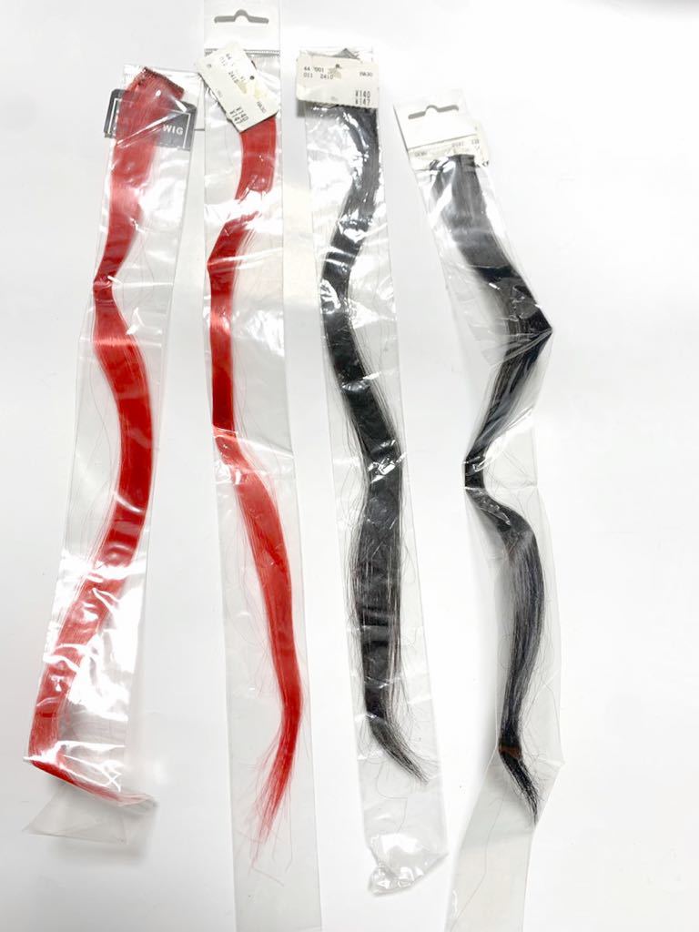 - ヘア エクステンション ブラック2本 レッド 2本 合計4本セット 新品