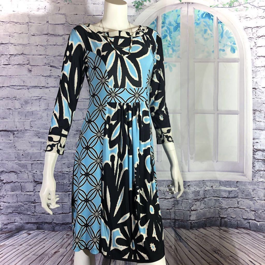 - OLIaN オリアン スカイブルーフラワーワンピース M カシュクール 夏秋