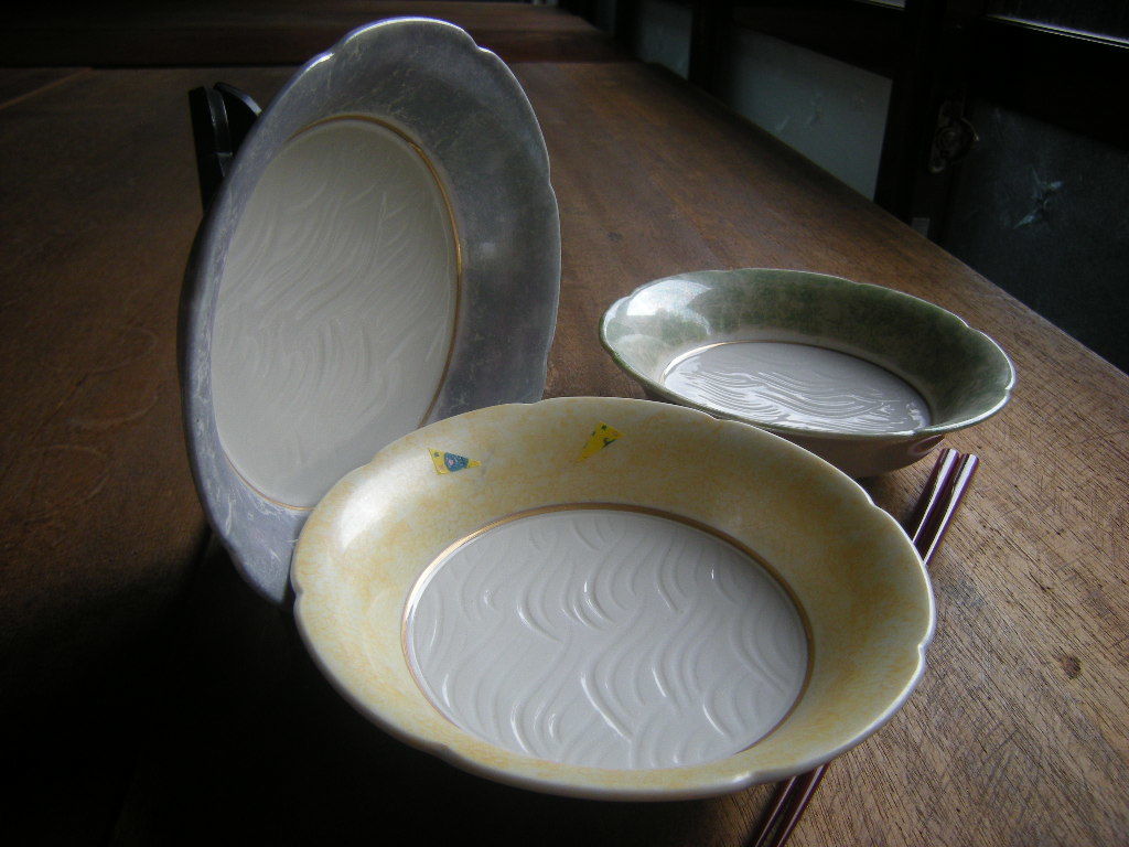 - 料亭うつわ◇現品限り【新品・未使用】3種(不揃い)金帯 八花弁 艶なし 5.5寸(16.8㎝x5㎝)3枚セット まとめて *高級うつわ*