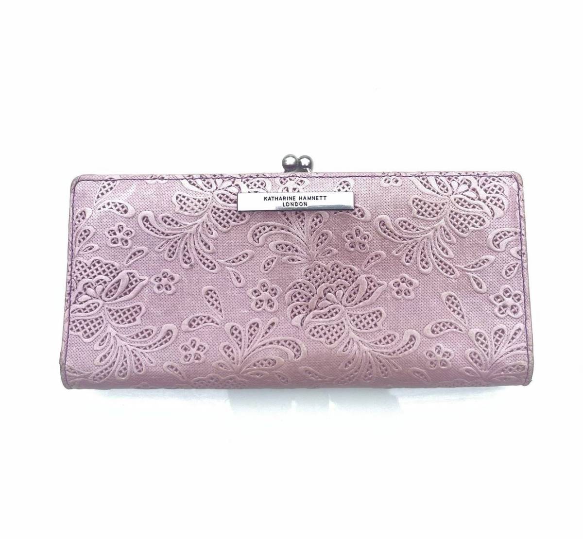 > 【人気】キャサリンハムネット KATHARINE HAMNETT フラワー柄 型押し加工 デザイン 大容量 がま口デザイン 長財布 レザー 革