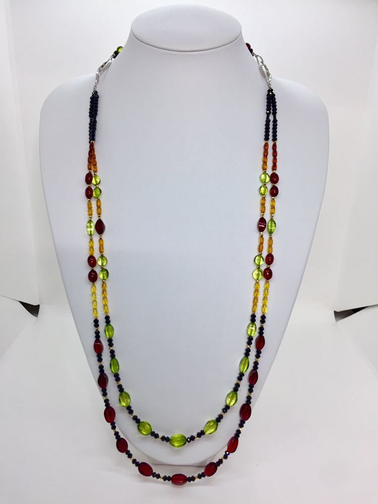 > 【新品、未使用】リトアニア産琥珀ロングネックレス*コンバーチブル*コハクこはくアンバー*オシャレ*一点もの*マルチカラー*二連
