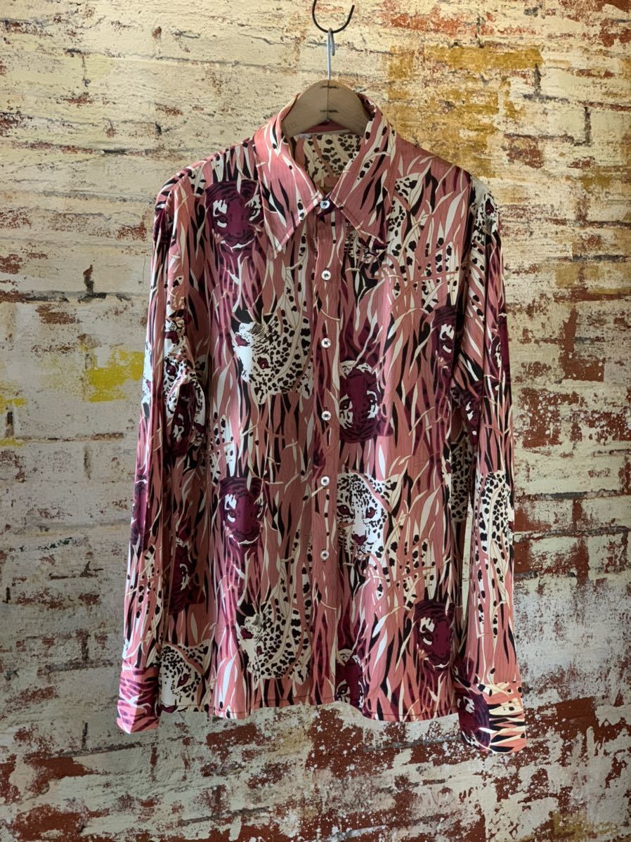 > 70s ANIMALS PRINTED SHIRT ヴィンテージ ビンテージ アニマル柄 プリントシャツ 長袖シャツ ROCKABILLY ロカビリー 60s 50s 送料無料