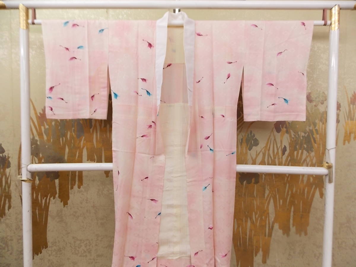 > きもの今昔2603 夏の100円バーゲン 長襦袢 正絹綸子地 バチ衿単衣仕立て 正絹羽二重居敷当て付き