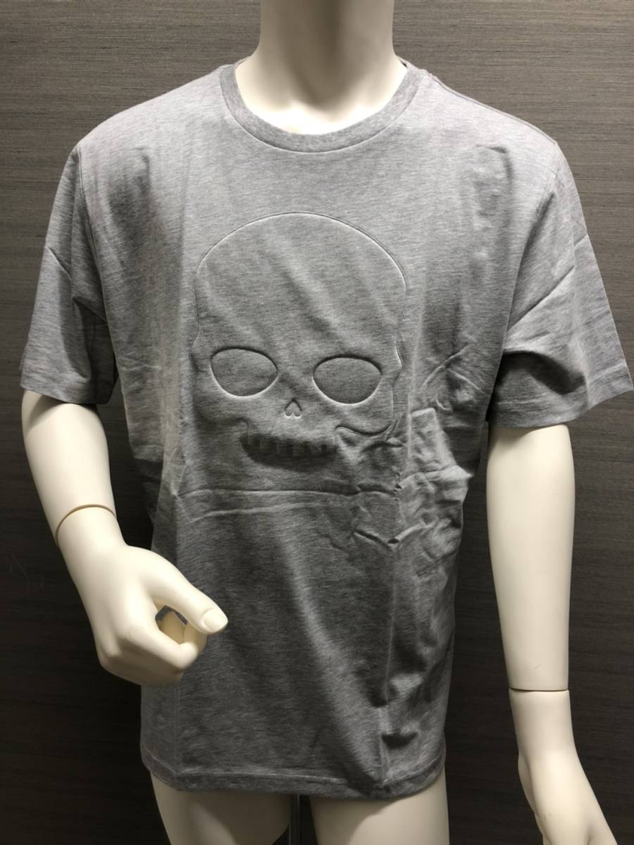 > 本物 新品 HYDROGEN ハイドロゲンエンボスフロントスカル半袖Tシャツ 214106 ライトグレー XL