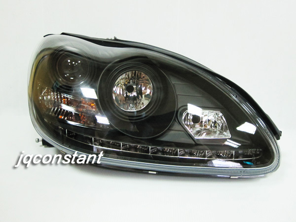 - ベンツ W220 前期用 1998-2002y LEDポジションDRL プロジェクターヘッドライト ブラックインナー
