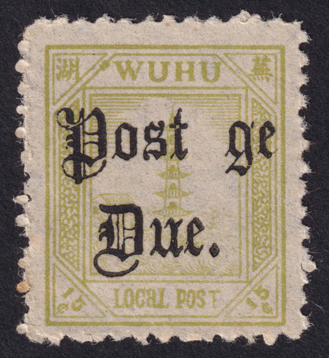 > 旧中国切手 書信館 蕪湖(WUHU) 1895-96年 欠資加刷票 postageの[a]抜け 15分 未使用 NH JPS:(LP270) Chan:LWD9c z12540