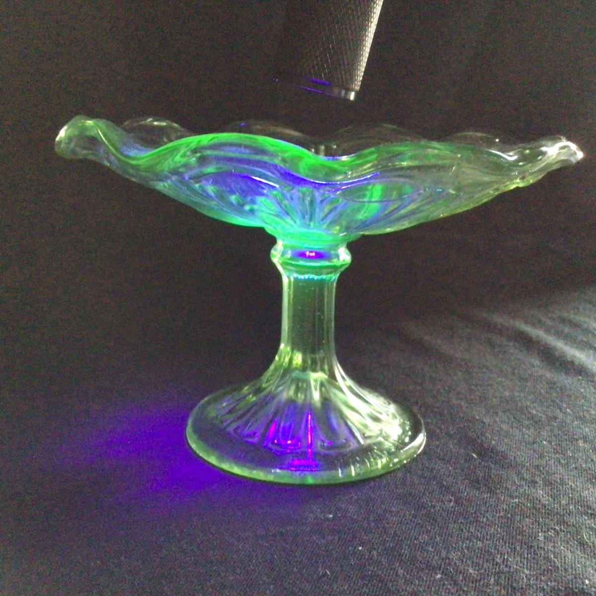 - ウランガラス 古いコンポート MADE IN JAPAN 気泡入り ゆらゆら ☆ 氷皿キャンディボックスグラス
