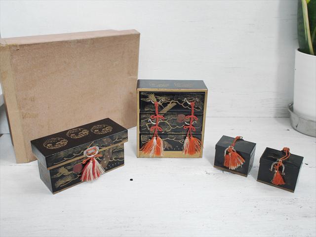 - アンティーク雛道具☆木製蒔絵・三つ揃い・J☆節句季節飾りミニチュアインテリアディスプレイアトリエ