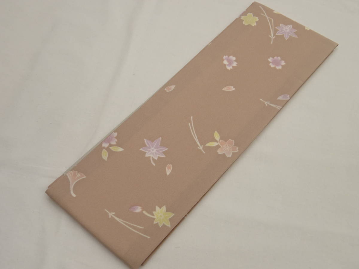 - 新品未使用・日本製★正絹・柄物重ね衿★茶グレー地に吹き寄せ柄です