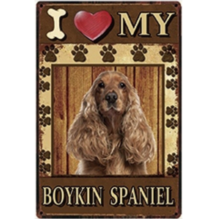 > A1383 メタル サイン ブリキ 看板 金属 プレート パネル 店 注意 動物 ペット 愛 犬 I LOVE MY ボイキン スパニエル 3982