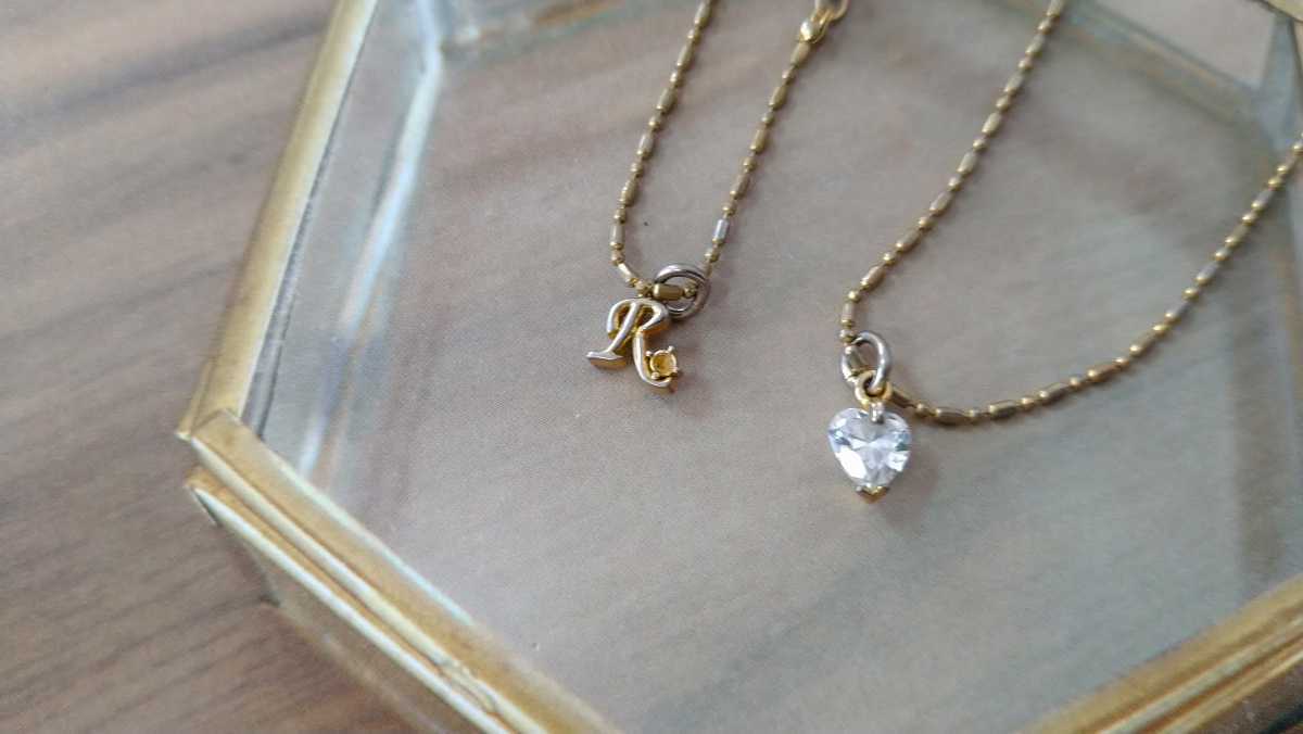 - □小さなハート1粒クリアストーンビジュー&R・クリアイエロービジュー・ネックレス□