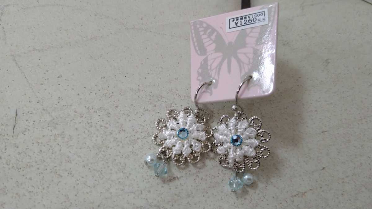 - □シルバーカラー×白×水色□フラワーモチーフ・ピアス□